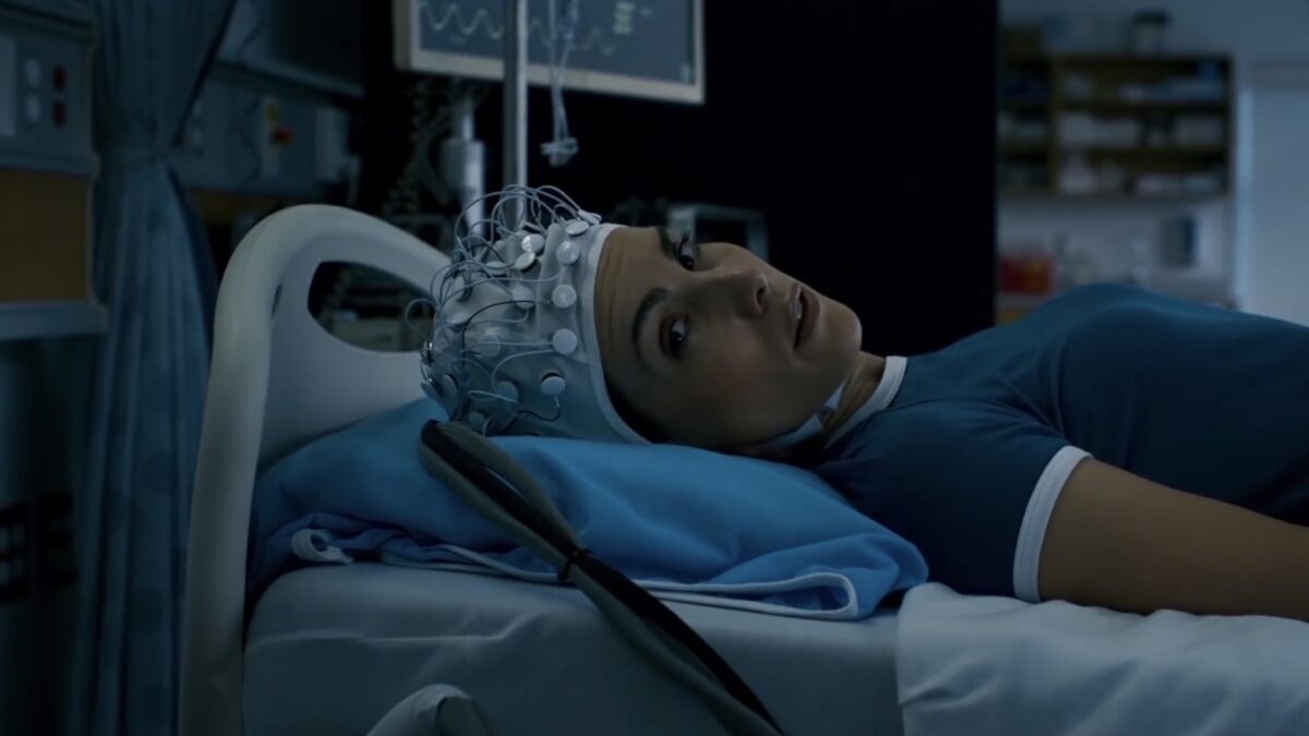 Carly (Carly Pope) has some issues. Many of them stem from a horrific crime committed by her mother years ago. So, when asked to take part in a virtual reality program, where she’d be entering into the virtual mindscape of her comatose mother Angela (Nathalie Boltt), Carly initially does it just to tell her off. However, her hopes of it being a one and done are put to rest by the shadowy figures who have recruited her. So, she investigates further, trying to figure out what made Angela go off the deep end. She’s going to wish she hadn’t, as you might imagine.
