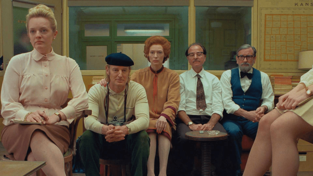 Taking place, at least to start, in a fictional twentieth century French town that houses “The French Dispatch Magazine,” a wing of an American newspaper. There, a number of expats pen long and dense missives to be sent back to the homeland. Under the watchful eye of editor Arthur Howitzer Jr. (Bill Murray), journalists like Alumna (Elisabeth Moss), J.K.L. Berensen (Tilda Swinton), Lucinda Krementz (Frances McDormand), Herbsaint Sazerac (Owen Wilson), and Roebuck Wright (Jeffrey Wright), just to name a few, give artful life to stories of European life. This occasion is the preparation of what will be their final issue.