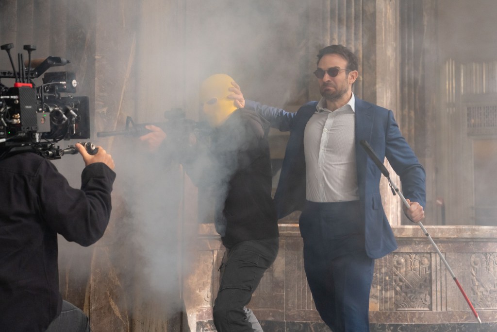 While following the narrative of the Netflix television series, Marvel’s Daredevil: Born Again has a distinct look and feel that sets it apart from what came before, while also paying homage to some of its most notable hallmarks. Cinematographer Pedro Gómez Millán helped establish the look of the series for episodes four and five, which Jeffrey Nachmanoff directed. While episode four is more in line with what was visually set up in the previous three by director of photography Hillary Fyfe Spera, episode five puts Matt Murdock (Charlie Cox) in an entirely different situation than what we expect coming from the character, and teaming up with an unexpected ally in Yusuf Khan (Mohan Kapur) to foil a group of bank robbers.