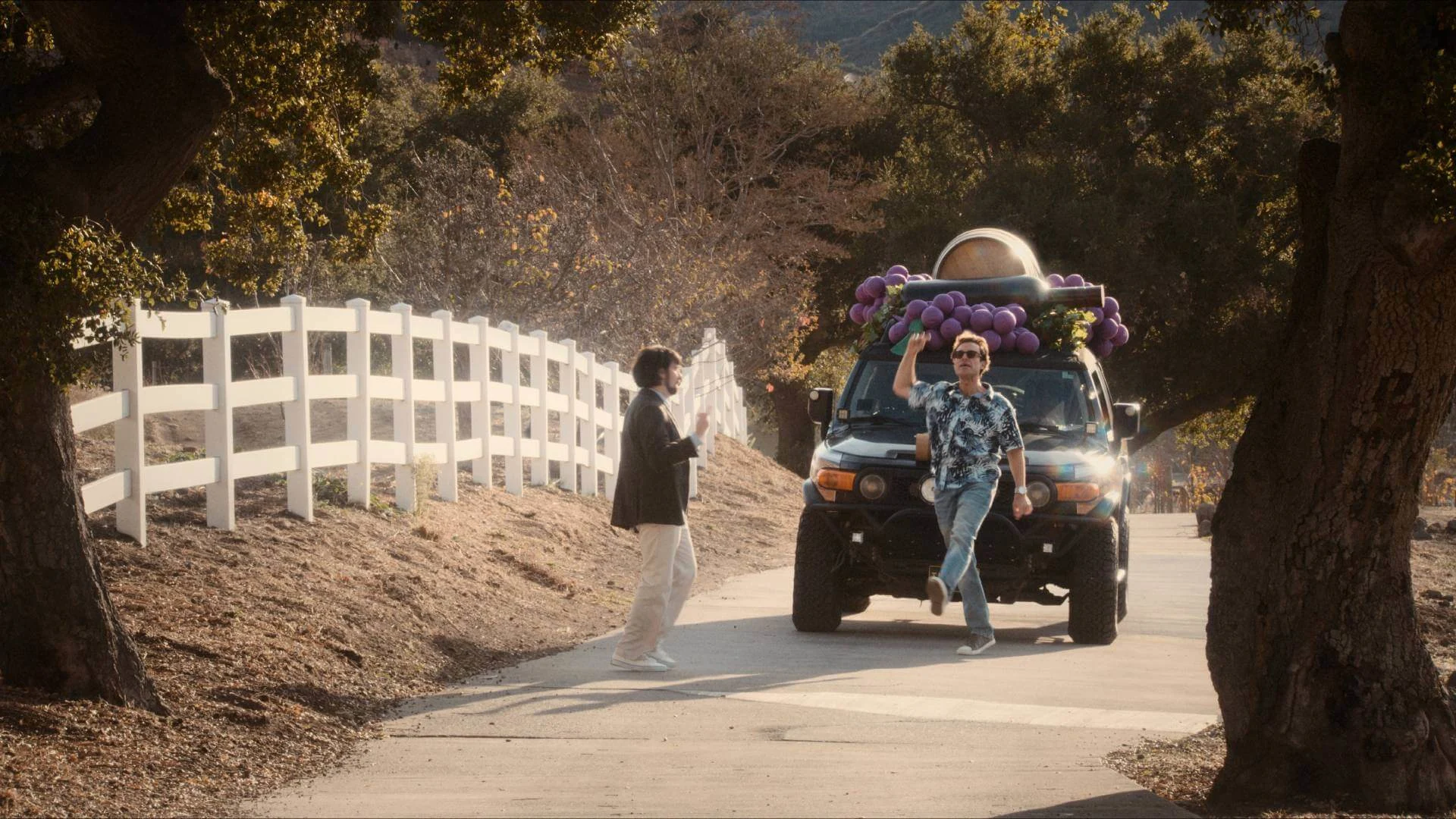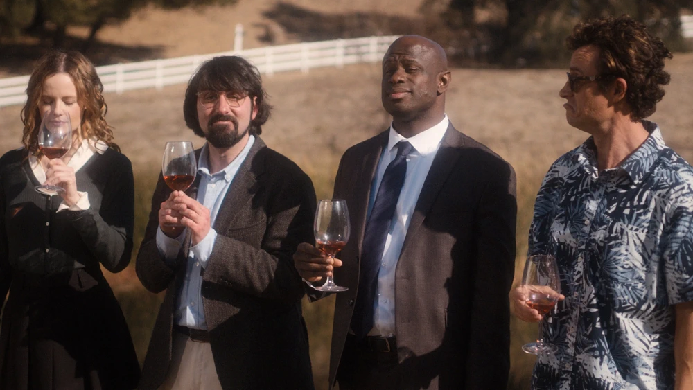 The film is presented as the fourth chapter in a non-existent franchise known as The Napa Boys. To that point, the movie’s title is shown to actually be The Napa Boys 4: The Sommelier’s Amulet. Here, we have Jack Jr. (Nick Corirossi), his former cohort Miles Jr. (Armen Weitzman), and the rest of the Napa Boys, Kevin (Nelson Franklin) and Stifler’s Brother (Jamar Neighbors), coming back for one more adventure. This time, they’re also joined by Puck (Sarah Ramos), an investigative podcaster and their biggest fan, in the Wine Wagon™ as they head back to, you guessed it, Napa.